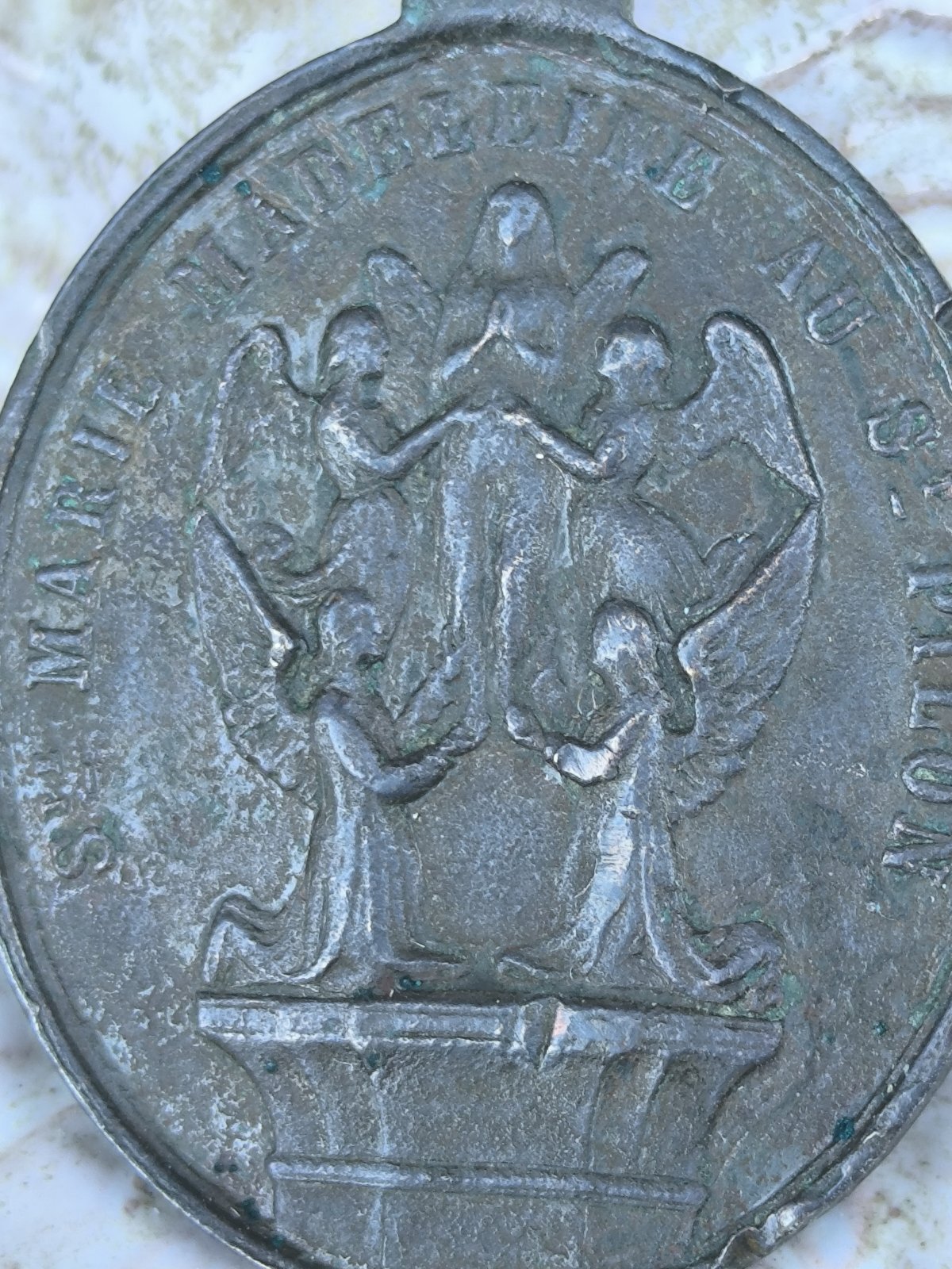 - > 【マグダラのマリア】【サントボームの洞窟】【4人の天使に天に運ばれるマグダラのマリア】フランス・アンティーク&ヴィンテージメダイ