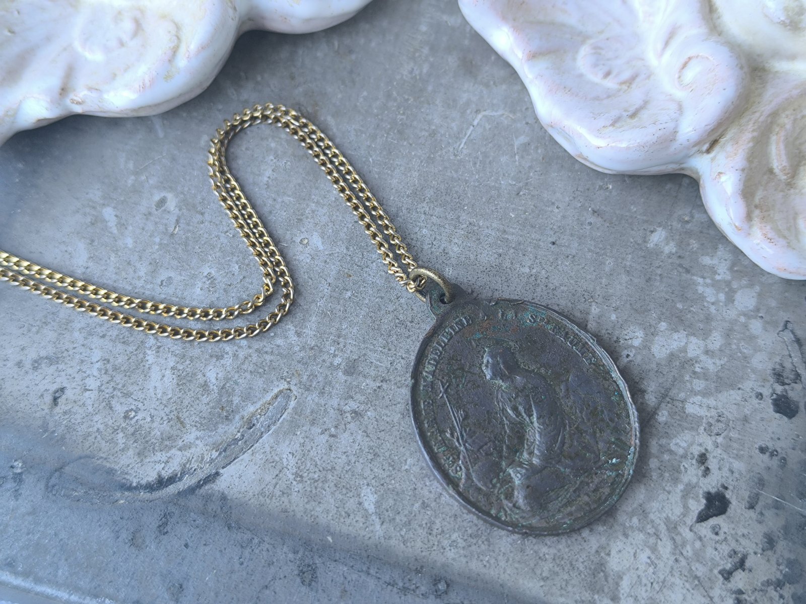 【モン・サン・ミシェル巡礼記念メダイ】【大天使ミカエル】【銅製】フランス・アンティーク&ヴィンテージメダイ [al1853]