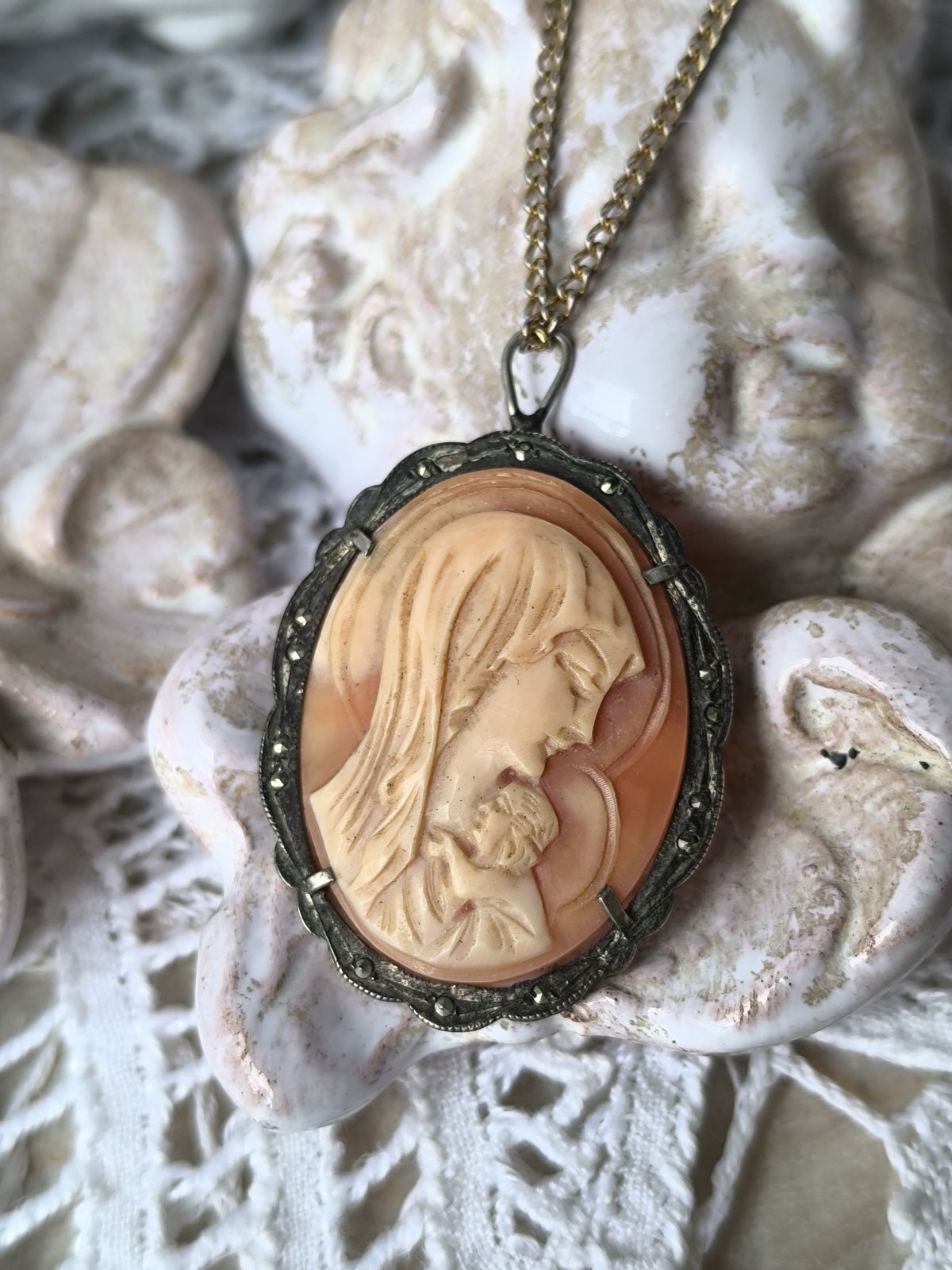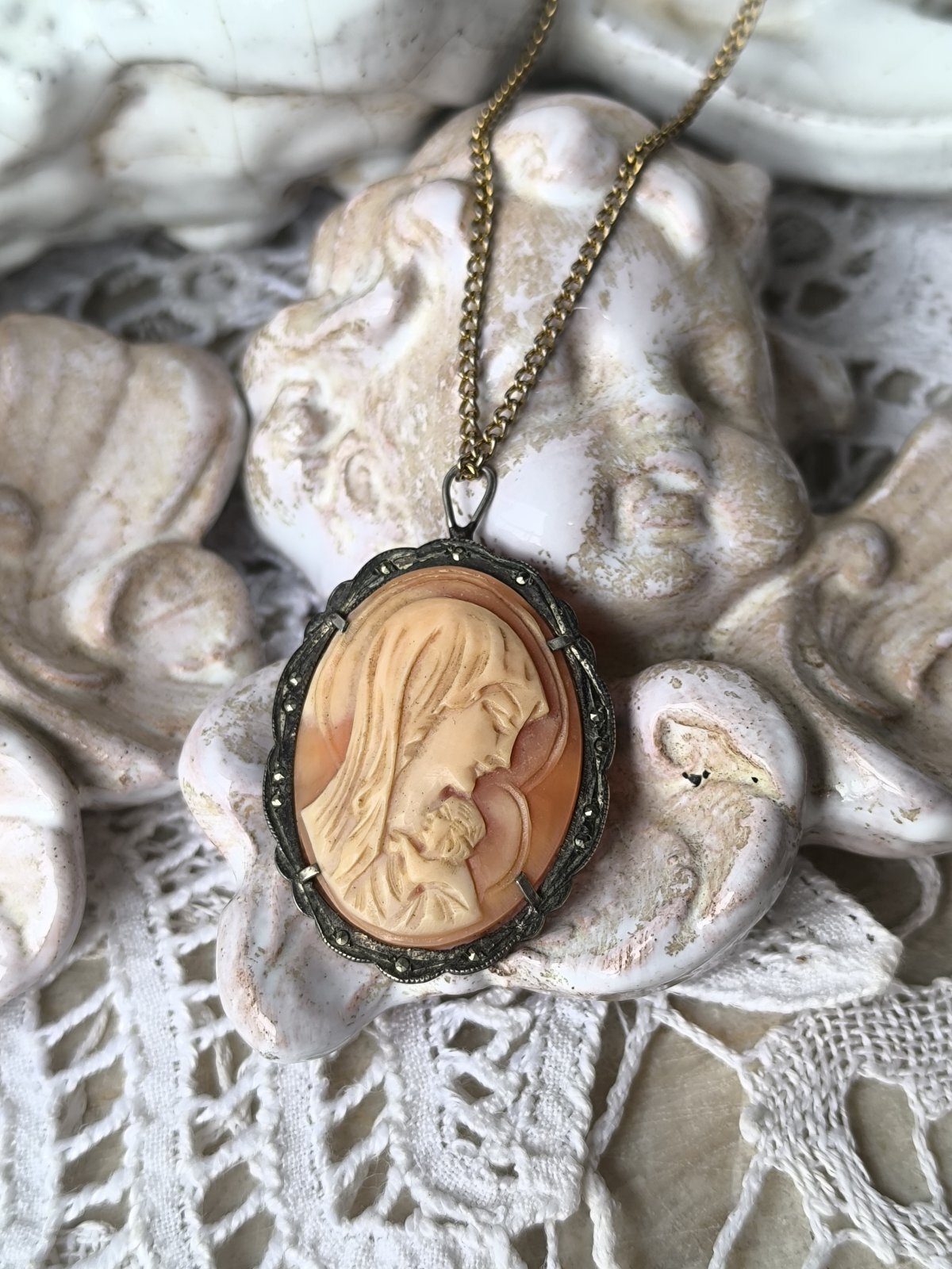 キリスト教モチーフは意外に少なく、聖母子や聖母の絵柄のカメオはなかなか見つかりません。