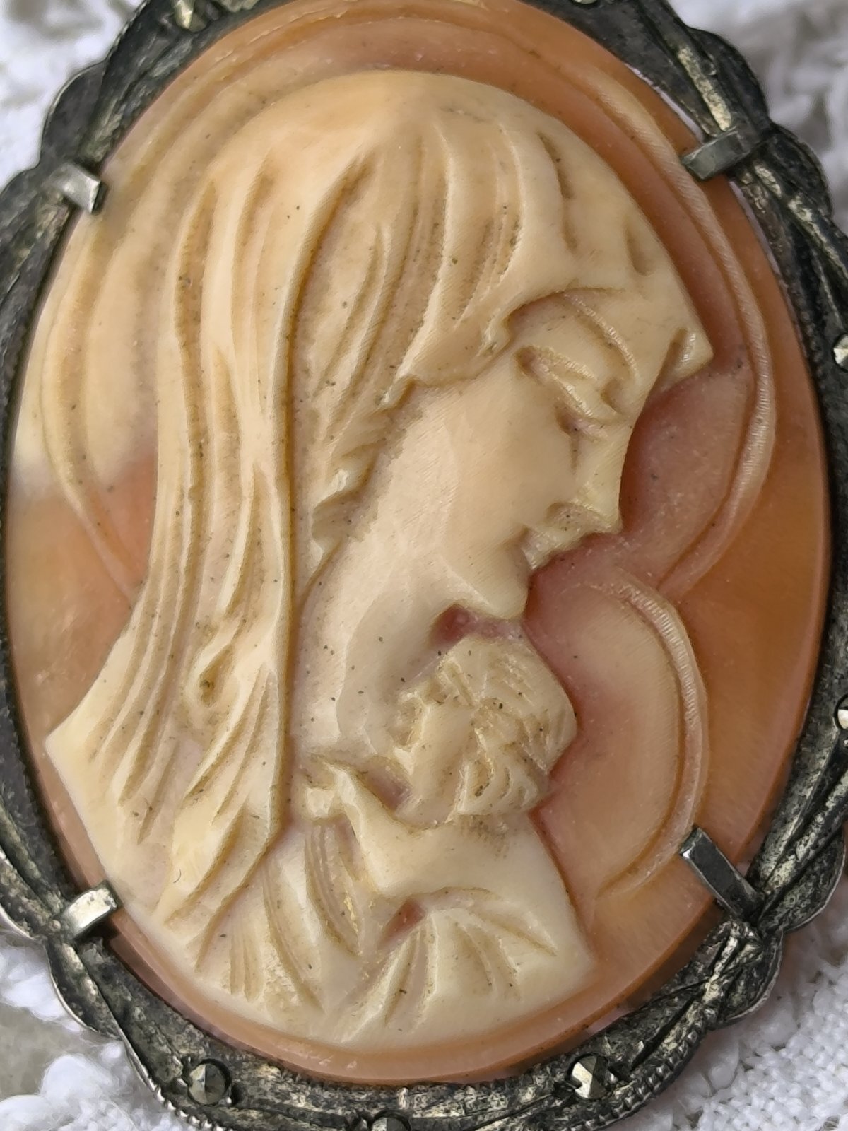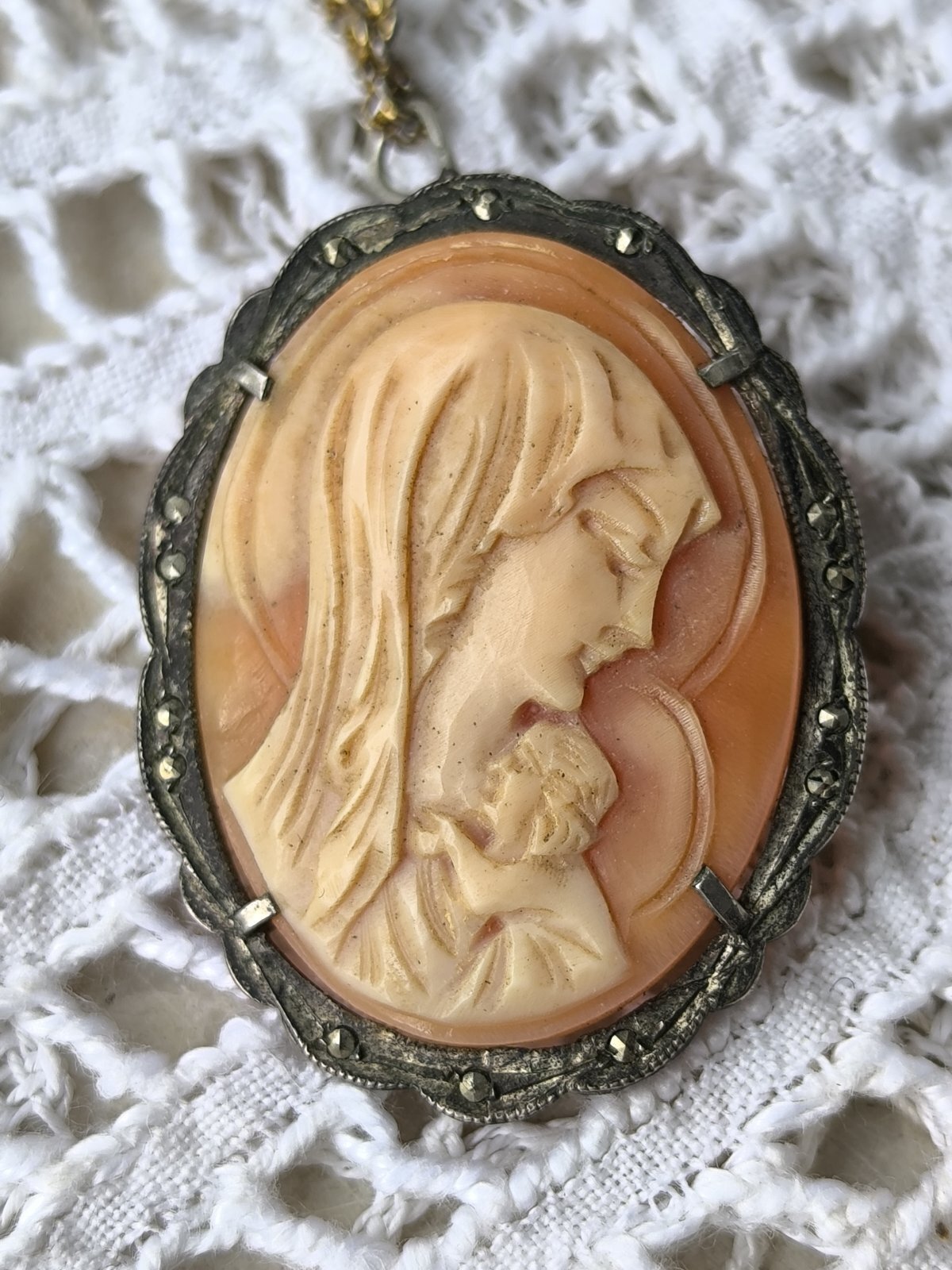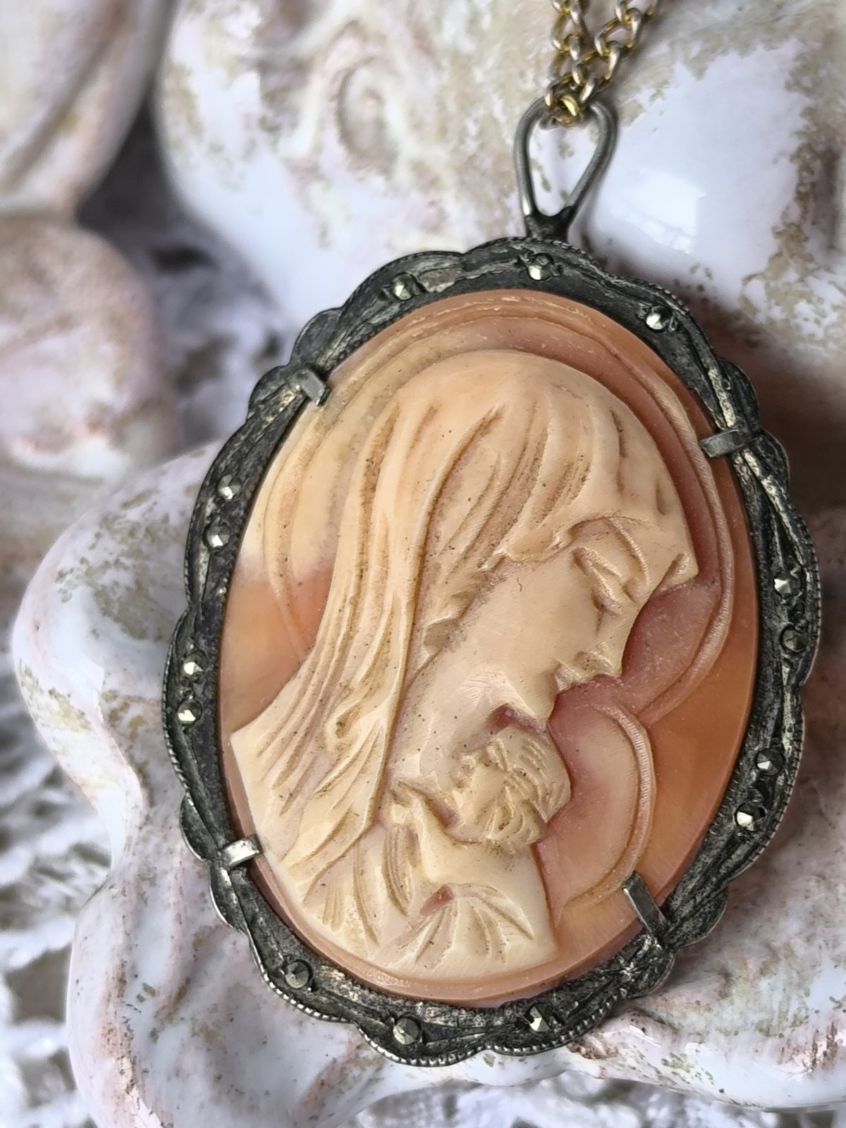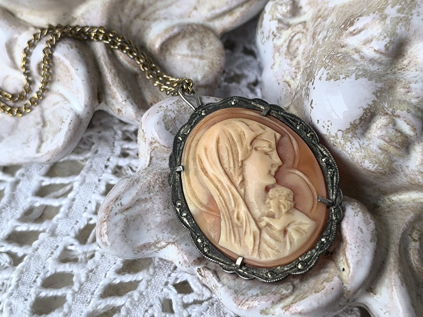 - > 【聖母子のシェルカメオペンダントブローチ】【マルカジットシルバージュエリー】イタリア・アンティーク・ヴィンテージ品