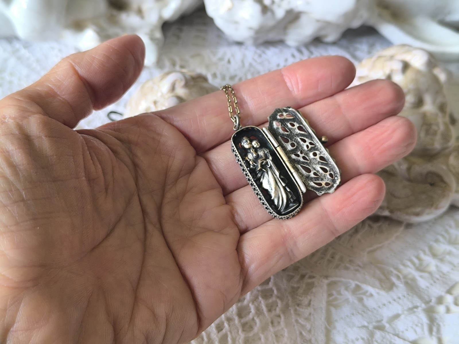- > 【聖堂薔薇窓風透かしトレーサリー】【ミニ聖像ケースペンダント】フランス・アンティーク&ヴィンテージ聖品