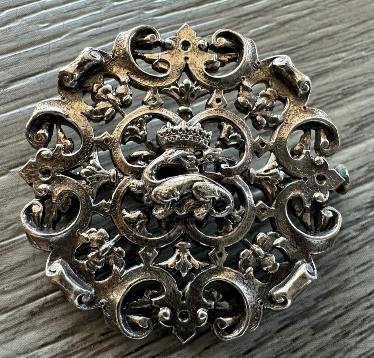 の紋章、サラマンダーの透かし細工ブローチです。