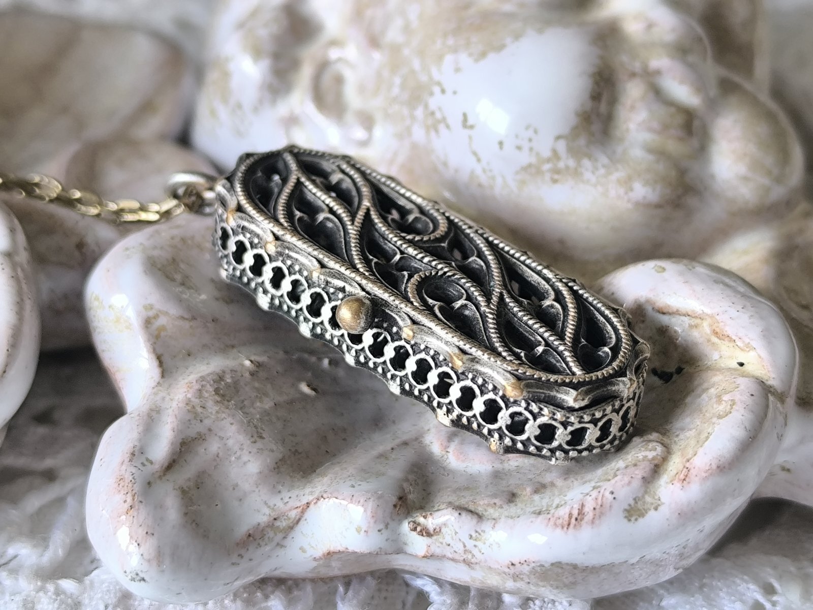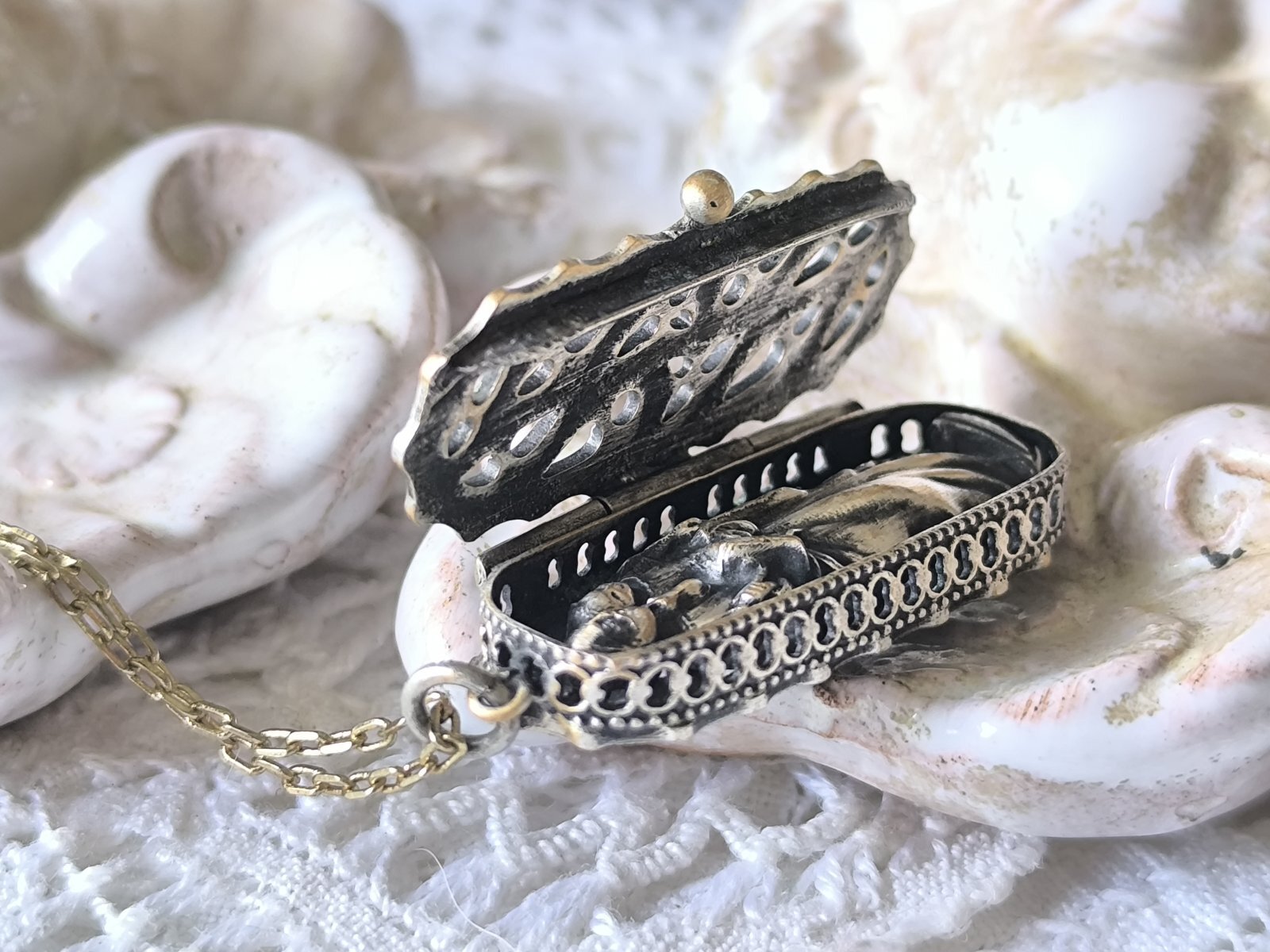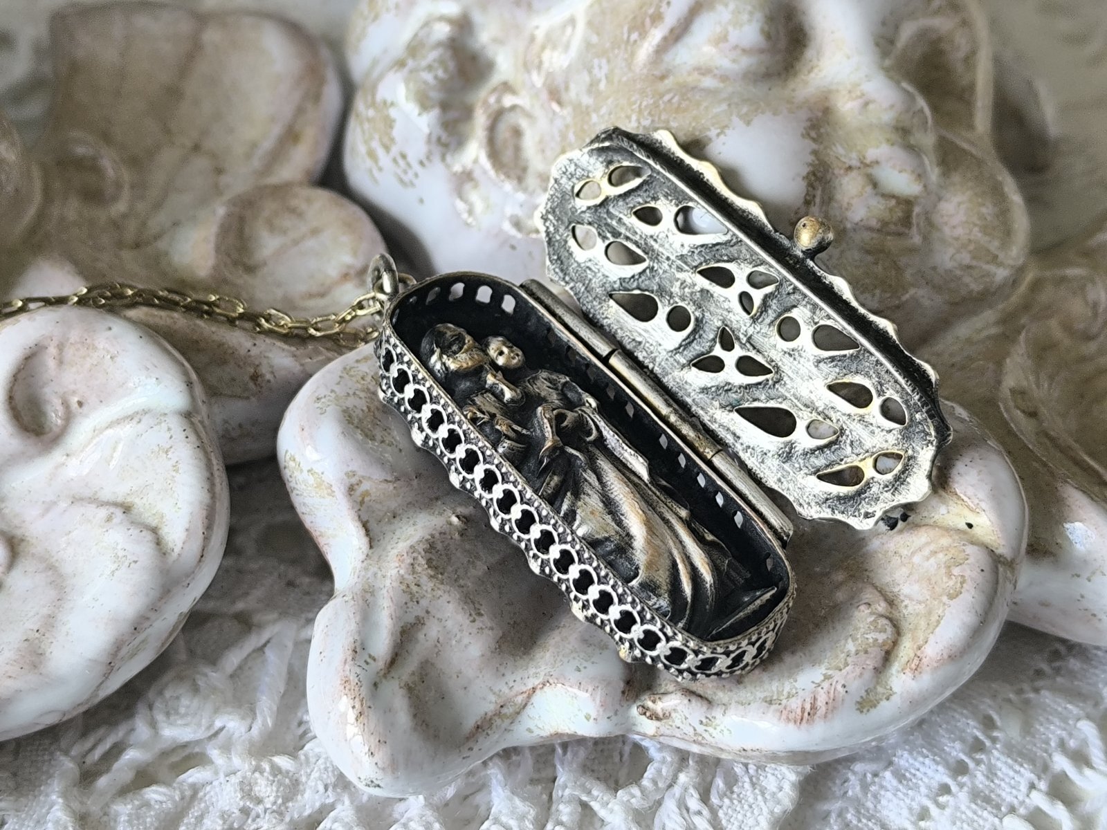 【聖堂薔薇窓風透かしトレーサリー】【ミニ聖像ケースペンダント】フランス・アンティーク&ヴィンテージ聖品[al1880]